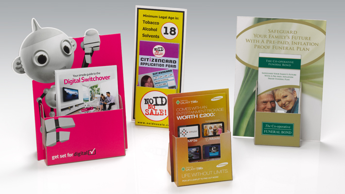 We offer a complete service encompassing design, cardboard engineering, proofing/prototyping, pre-press, printing, finishing and fulfilment… or any combination of these processes. Our studio can design your Point of Sale material from your brief or adapt existing artwork to suit. Whichever you choose, you’ll benefit from high quality, expert project management and competitive pricing.